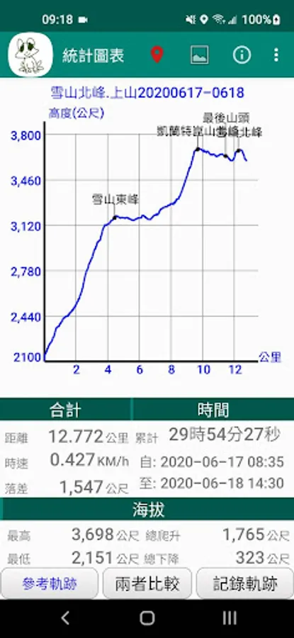 4. View and share the content of the track record file: trip summary, altitude drop map, map photo