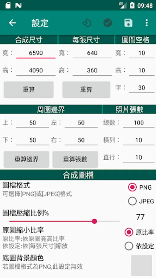 3. Can customize photo storage format (PNG or JPEG) and compression ratio