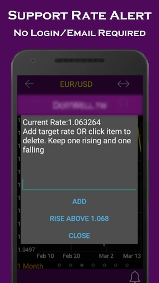 - Rate Alert, send notification while required rate reached. No login/email required.