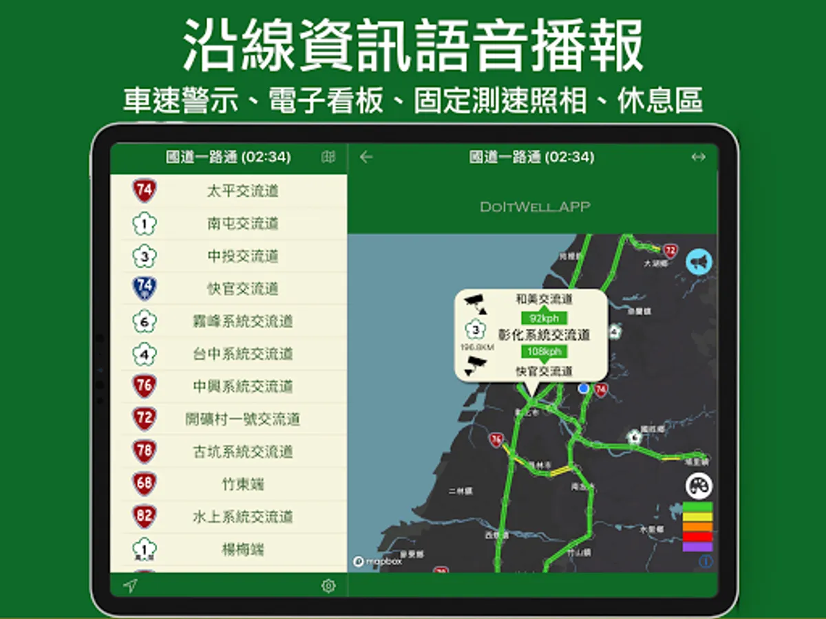 National highways all the way-real-time images of Taiwan highways, traffic congestion, speed query and voice broadcast along the route