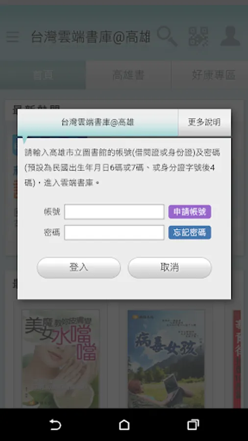 「台灣雲端書庫」目前合作超過500家出版社,提供20,000種以上的優質電子書、雜誌,讀者只要持有「台灣雲端書庫」合作的公共圖書館借書證,即可享有免排隊、免等待,不受借閱本數的限制的電子書閱聽服務。
