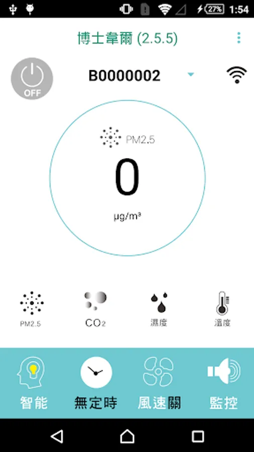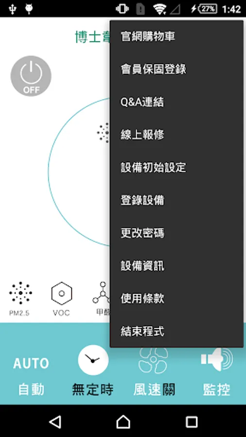 可透過下方按鈕切換控制畫面,直接透過網路對空氣清淨機下達操作指令,