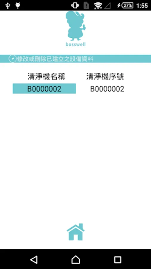 顯示已登錄的設備名稱及帳號,並可以修改設備名稱及刪除不需要控制的設備。