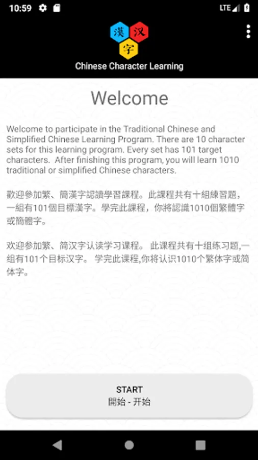 Welcome to participate in the Traditional Chinese and Simplified Chinese Learning Program. There are 10 character sets for this learning program. Every set has 101 target characters. After finishing this program, you will learn 1010 traditional or simplified Chinese characters.