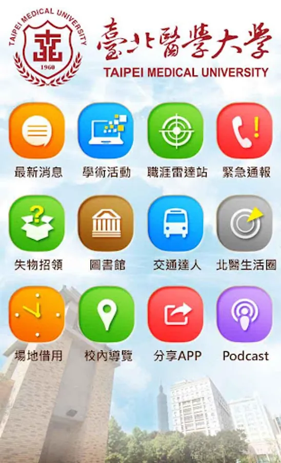 「iTMU」由臺北醫學大學規劃設計,提供使用者快速掌握校園訊息,個人學習查詢、週邊交通與生活資訊等。