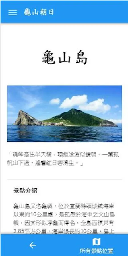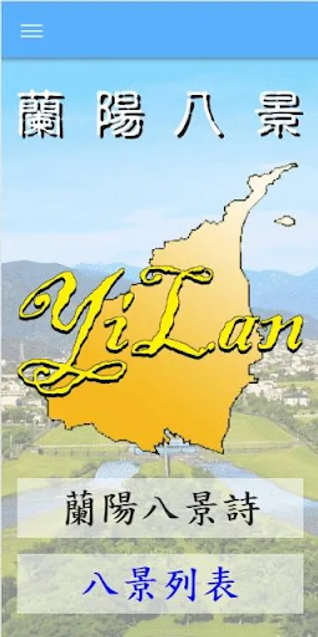 運用先人所對宜蘭這塊土地所描寫的蘭陽八景詩做為延伸,把宜蘭的景色丶人文與文化透過這個app能傳遞出來,甚至不單僅是想到來宜蘭的旅人方便找景點、美食的好幫手,更是希望透過app能讓宜蘭的美很有自信的展示出去,讓更多的人驚嘆前往拜訪著。