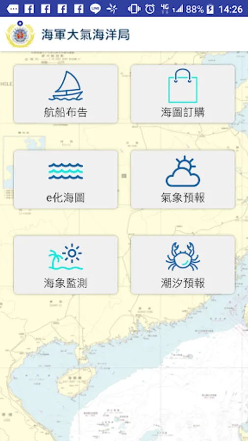 Respectively, to provide ship notices, charts ordering, e-charts, weather forecasting, monitoring walrus, tide forecasts and other functions, this app is the core functionality of e-charts, which provide relevant information on the chart, and the image information of providing for the general public to use.
