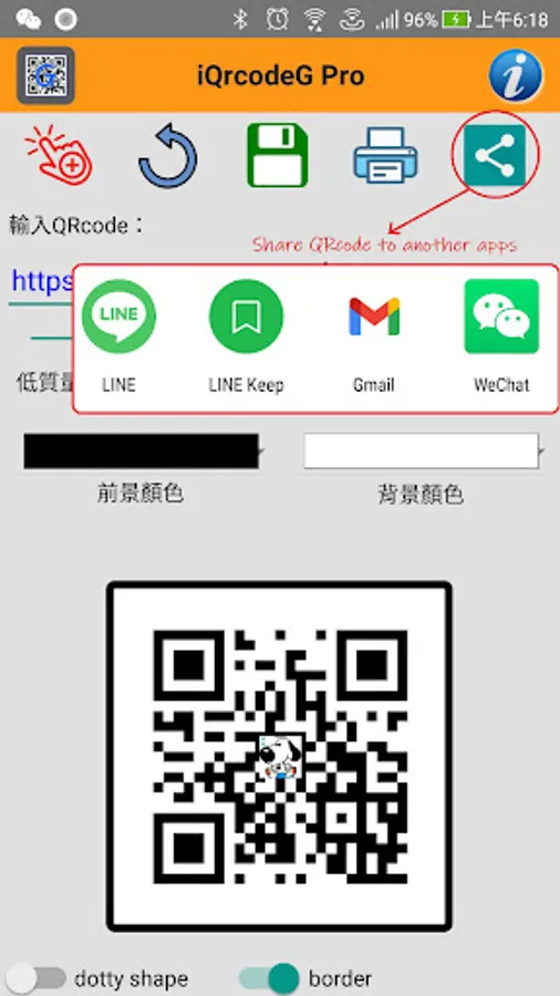 7.Support QRcode sharing to other apps