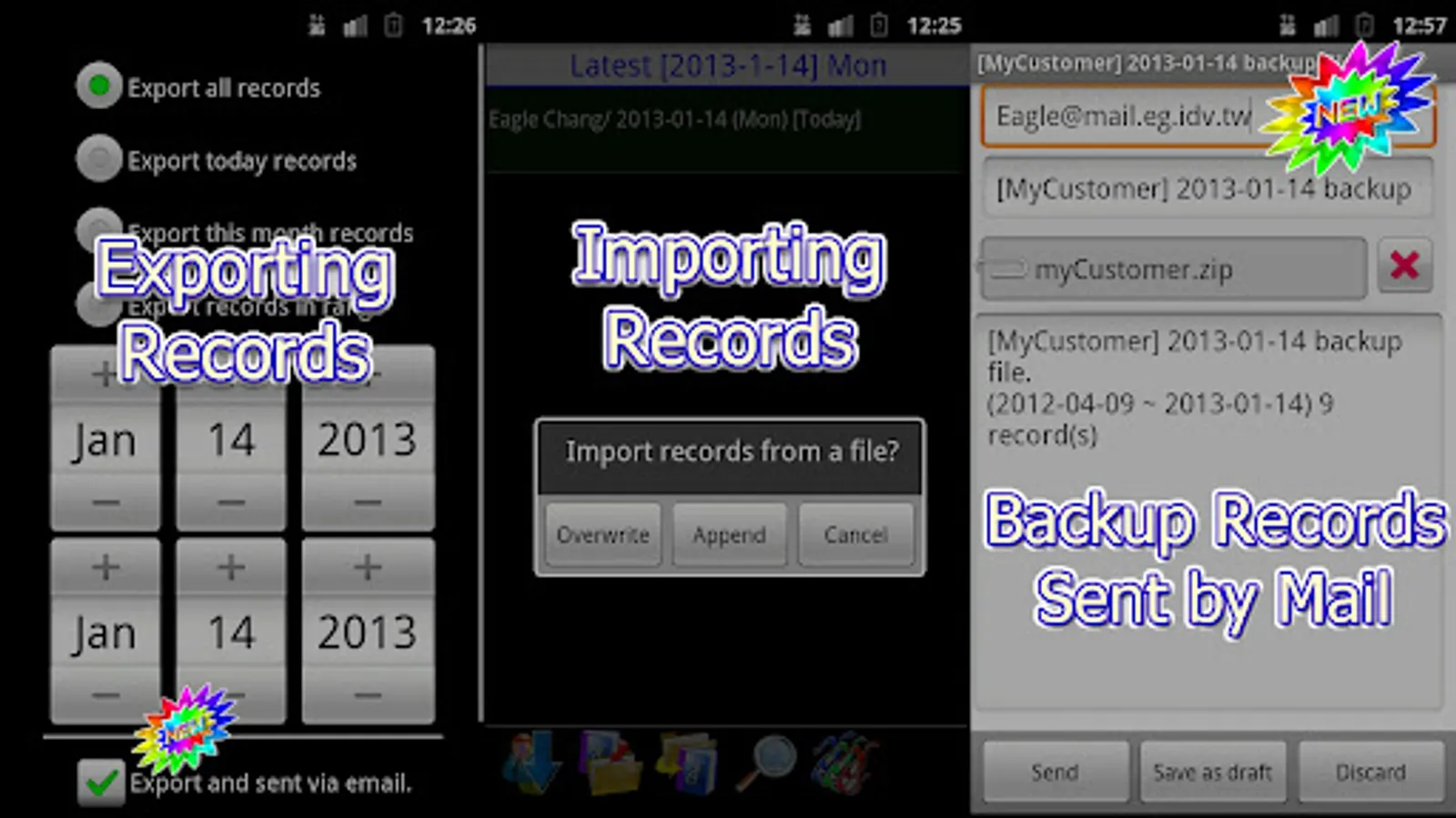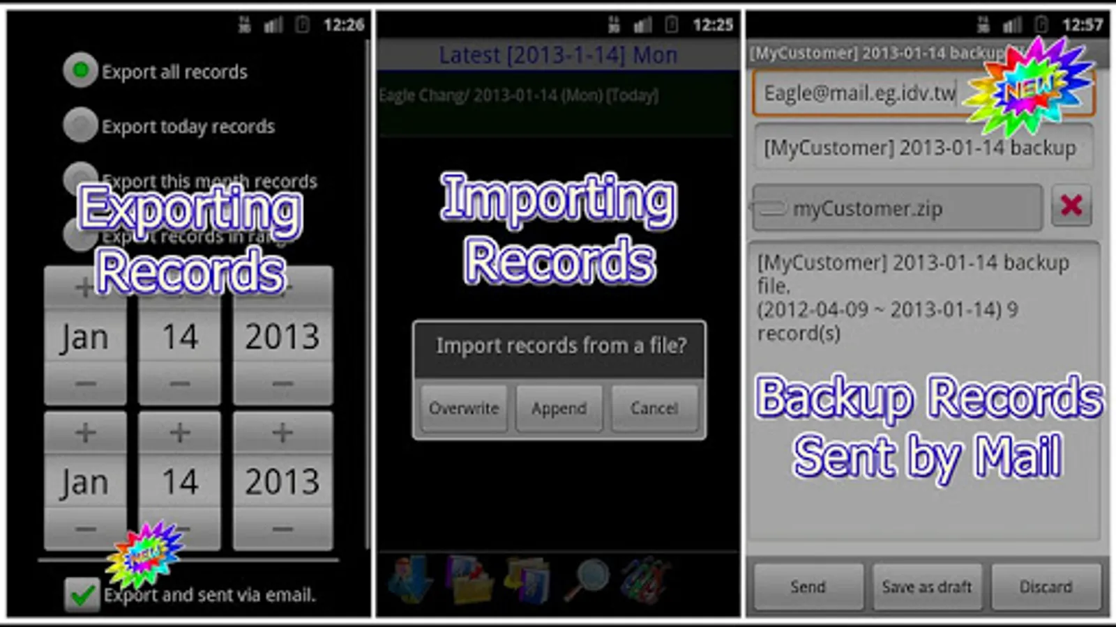 3.The backup files (myCustomer.csv & myCustomerBIG5.csv) are saved in /root (or /sdcard). There is also a myCustomer.zip if you send those files via email.
