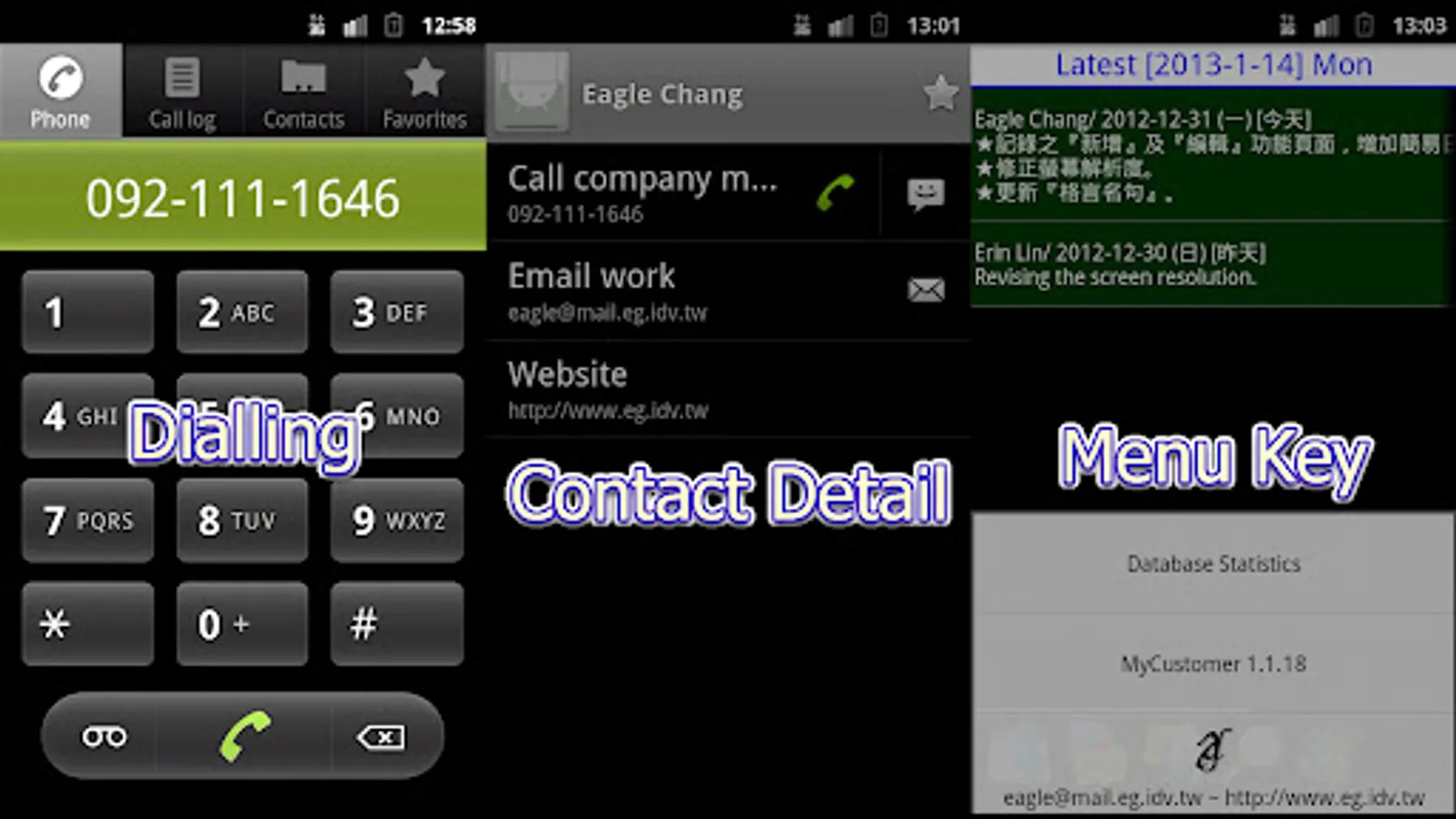 Since then click on the customer name locating on the top left → entering contact information page; click on the "telephone" → entering to dialing page.
