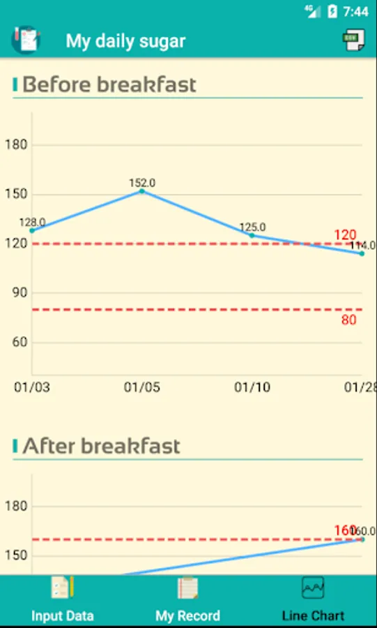 *The blood glucose pattern of each period is presented - Easy to observe whether their blood sugar to maintain normal value