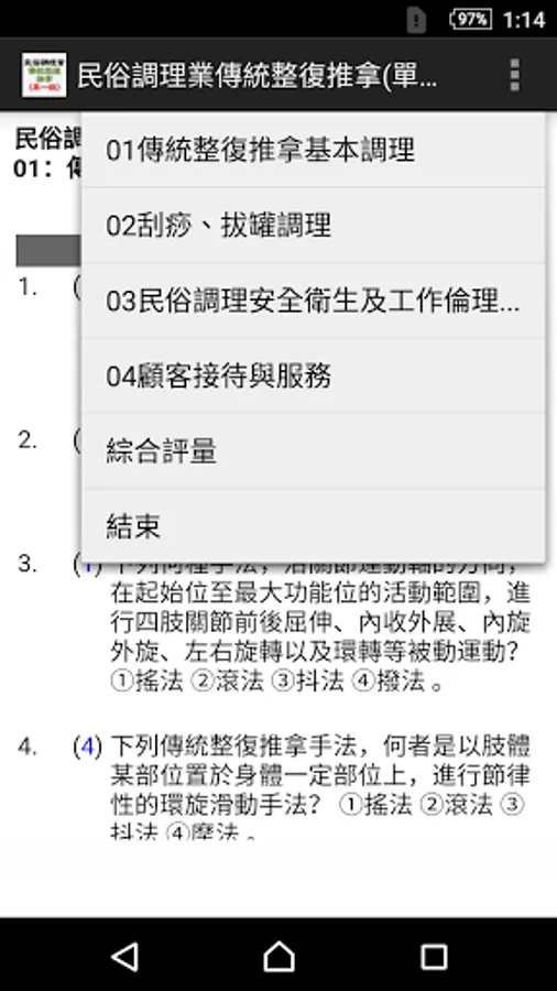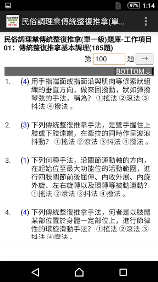 01: Basic conditioning of traditional massage therapy (185 questions)-14 questions deleted