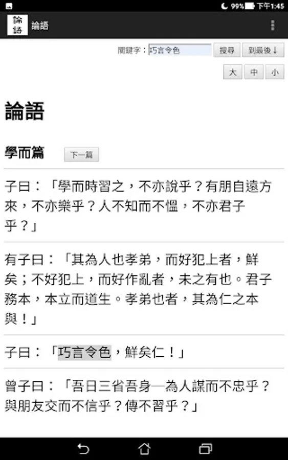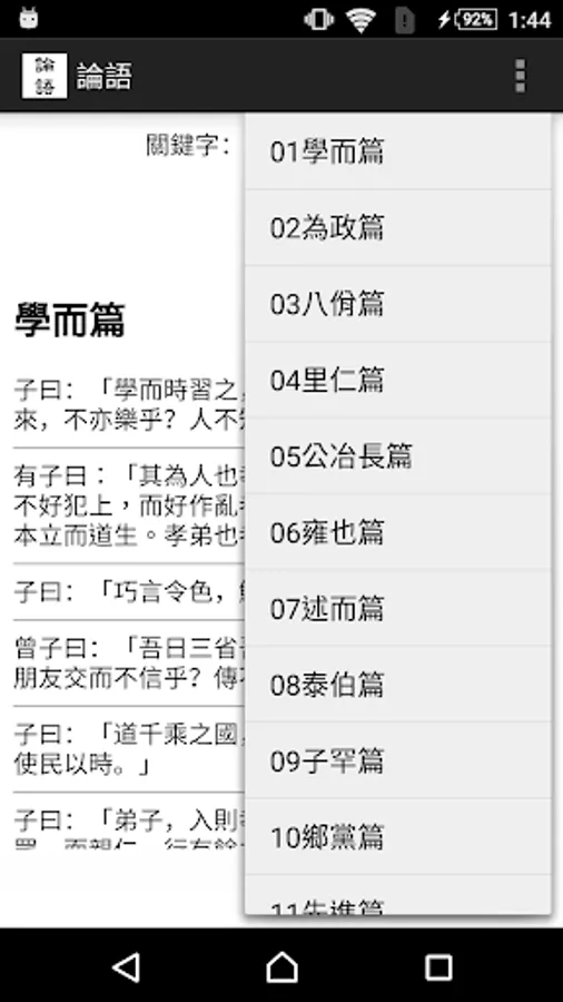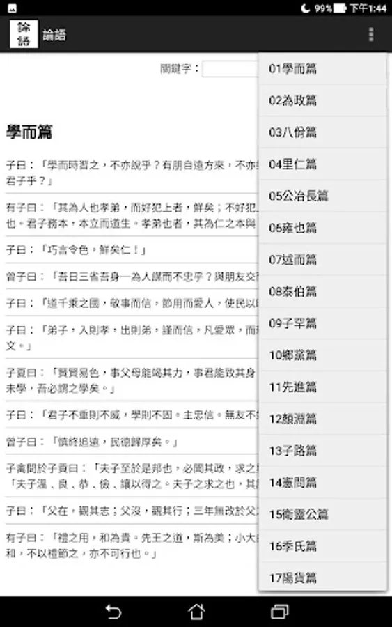 Advanced articles, Yan Yuan articles, Zilu articles, Constitutional questions articles, Wei Ling Gong articles,