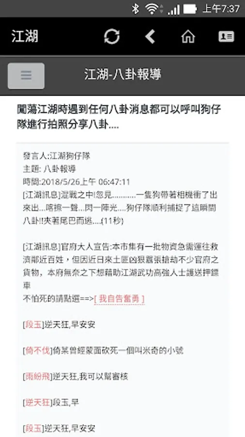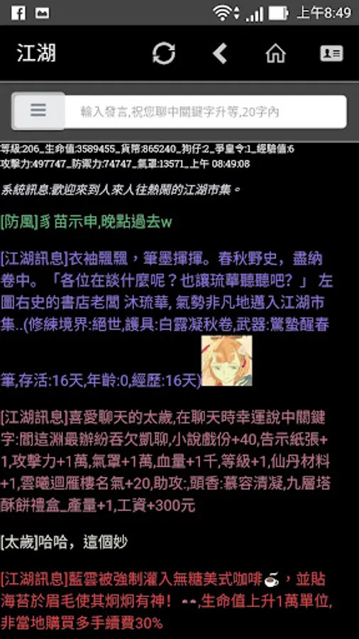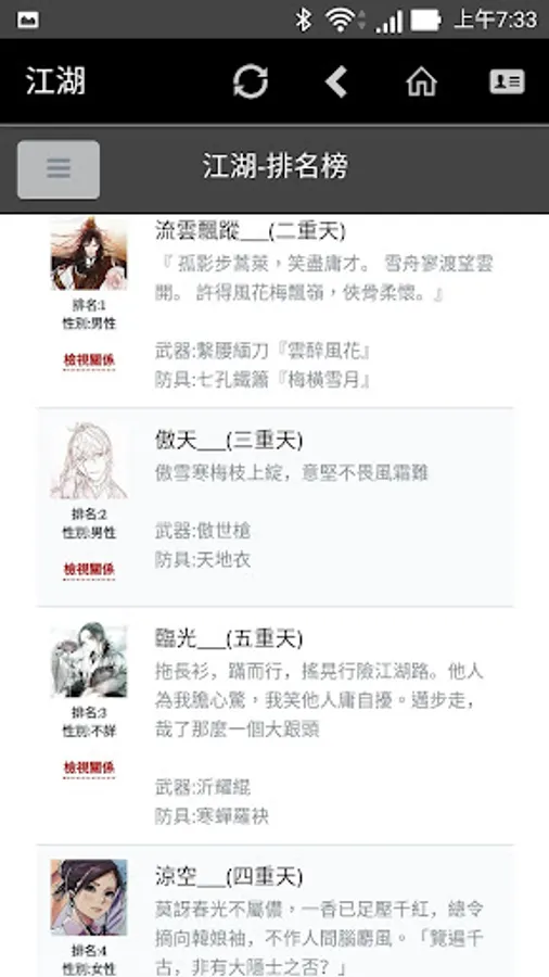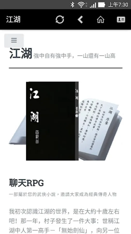 The martial arts fans who are willing to enmity and eagerly hope to jointly create a "river and lake world" in the virtual network country--the martial arts fans can create their own characters and freely play the stage of the rivers and lakes.