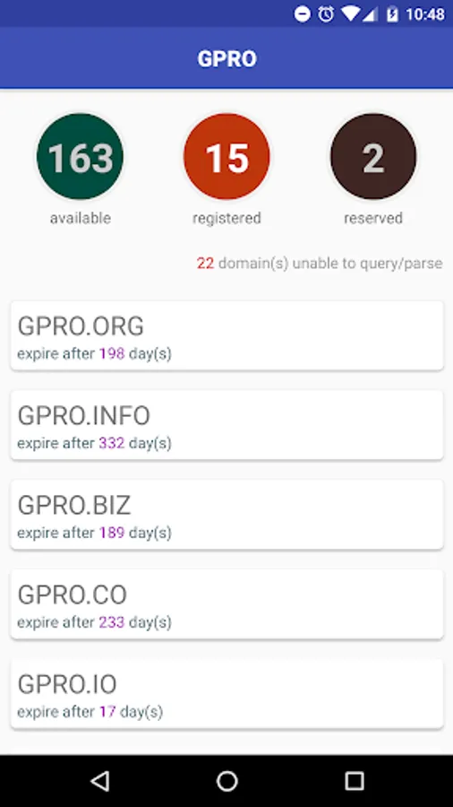 - Enable determine if domain name is available or reserved (by ICANN / Registry) or when will be dropped