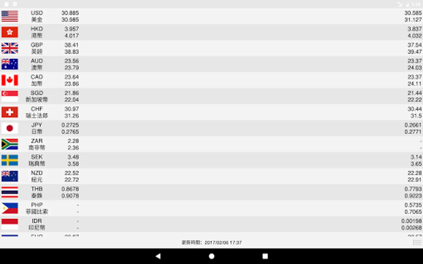 Taiwan offers one bank each unit of foreign currency exchange rate of NT instant. Presented the order to "spot exchange", "cash exchange rate", and the column is "bank buy" next to "sell the bank", if there dash "-" represents no offer of the exchange rate. In the program display area pulldown currency exchange rates can be immediately rearranged.