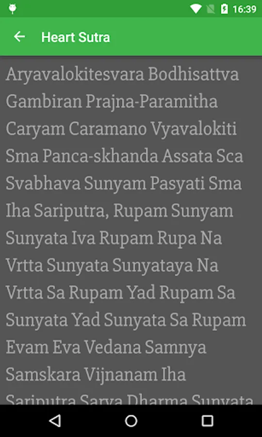 The Heart Sūtra (Sanskrit: प्रज्ञापारमिताहृदय Prajñāpāramitāhṛdaya) is a famous sūtra in Mahāyāna Buddhism. It's Sanskrit title, Prajñāpāramitāhṛdaya, literally means "The Heart of the Perfection of Understanding." The Heart Sūtra is often cited as the best-known and most popular Buddhist scripture of all.