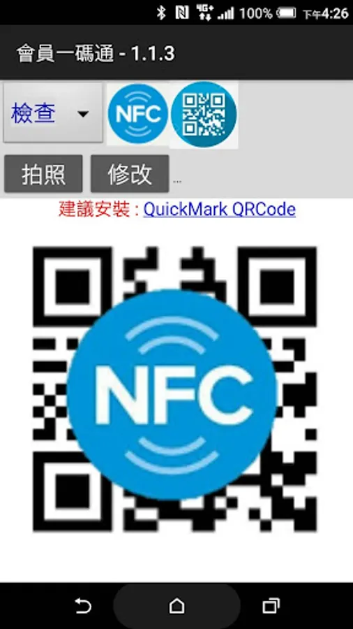 The system supports QR Code, one-dimensional bar codes, NFC reading.