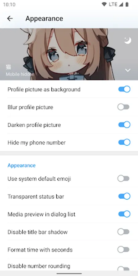 Use your avatar as drawer header background, use system emojis, let the status bar be transparent, and more.