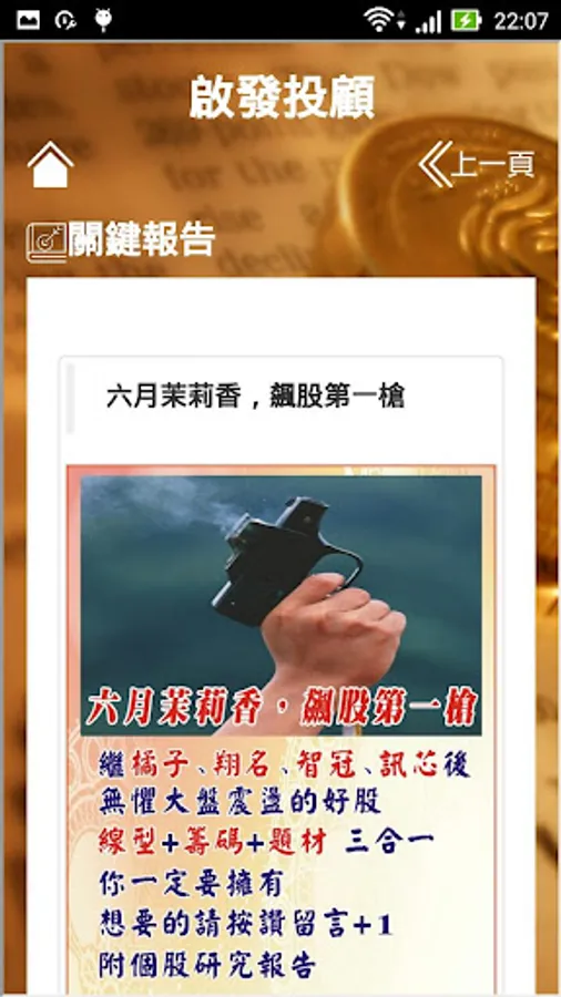 啟發投顧以頂尖操作團隊,即時掌握股市方向,提供全方位的證券暨期貨投資理財規劃,不斷創新,以客戶獲利為啟發投顧最終目標。本應用程式為啟發證券投資顧問股份有限公司專屬行動應用程式,提供各項簡易功能下載使用,讓客戶能夠更快速的掌握相關訊息!