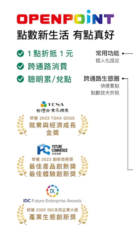 OPEN POINT is a bonus point business issued by Uni-President Supermarket Co., Ltd. Currently, it can be used in all stores in Taiwan, and you can pay, accumulate points, and redeem at one time!