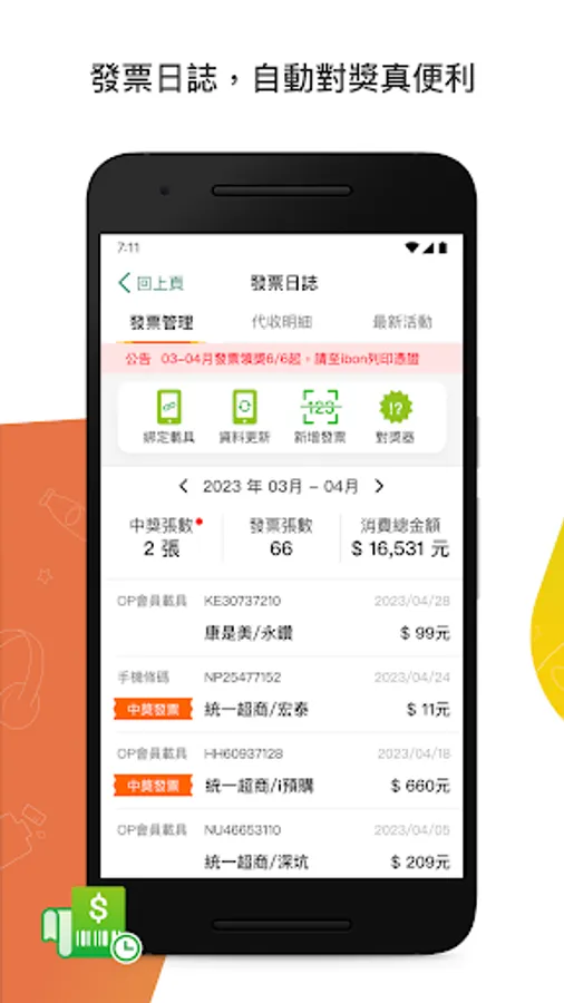 8. Invoices - save invoices for consumption, and it is more intimate for members to match awards/notify to receive awards.