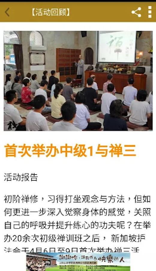 目前的管委成员有7人,齐心策划会所的常年活动和维持法鼓家风。 例常活动包括禅修组、念佛组、教育组、心灵环保组、法青会、读书会、环境组、建募基金组、活动组和义工组等。各组的悦众菩萨各尽其职筹办定期与大型活动,通过法鼓山的三大教育—大学院、大普化、大关怀教育,传达与接引社会大众学习佛法。 新加坡护法会秉持和积极实践法鼓山创办人圣严法师创建法鼓山的理念、精神、方针和方法为依归;奉献自己,成就大众;并以延续弘扬汉传禅佛教永住于世为任务。