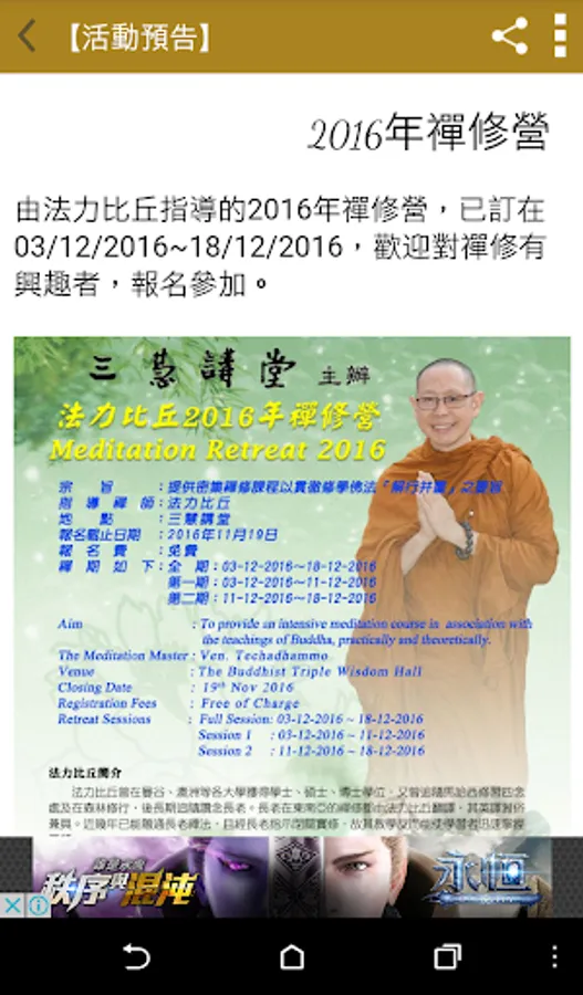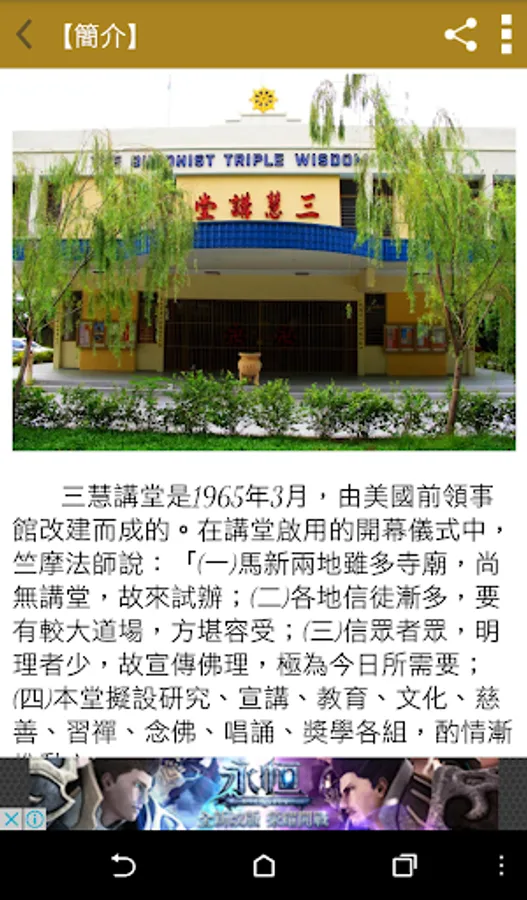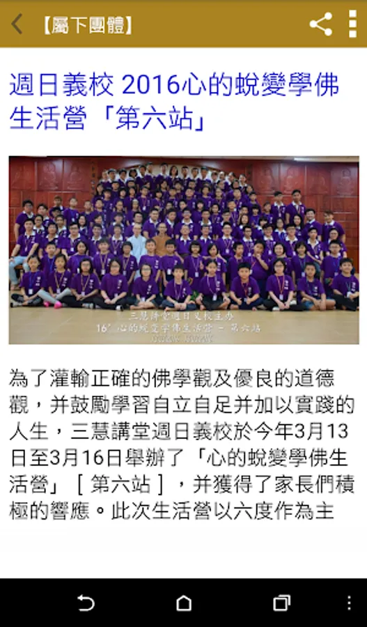 如今,在電子產品日益盛行的時代,三慧講堂也借助3C產品的管道,製作了「三慧講堂app」,希望未來的課程、修持活動等會有更多人參與,共同深入經藏,將佛法傳播下去。