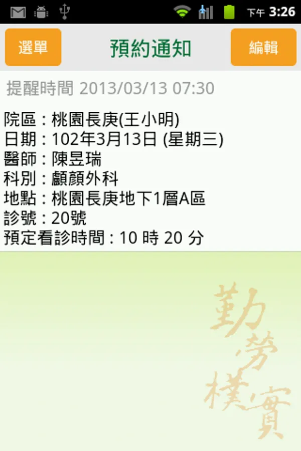 Allows you to view the registered information, and remind you through your mobile phone to notify you about matters related to the consultation.