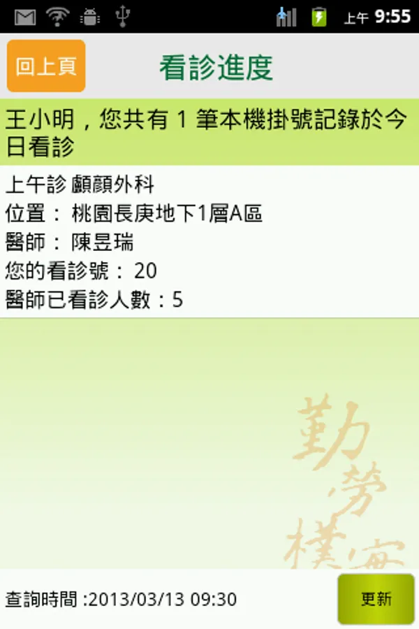 Use the registration information stored in the mobile phone to check the progress of the doctor's consultation.