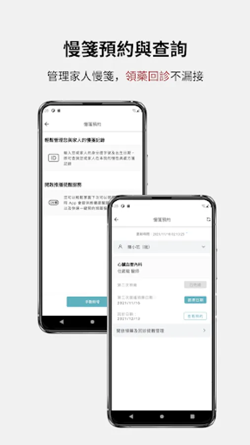 【Reservation by Slow Note】 Provides reservation and inquiry service by slow note. You don’t need to wait in line to get the number plate, you can go directly to the pharmacy to get medicine easily. Provides the function of slow note record management, allowing you to easily manage all chronic disease continuous prescription notes for you and your family. Personalized push broadcast reminder service, intimate notification, to avoid the risk of medication interruption.