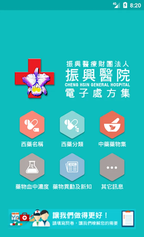 以行動裝置方式及時呈現本院藥物使用之品項,方便臨床查詢,隨時可提供臨床藥品之資訊。振興醫院電子處方集將以下載方式於行動裝置內。