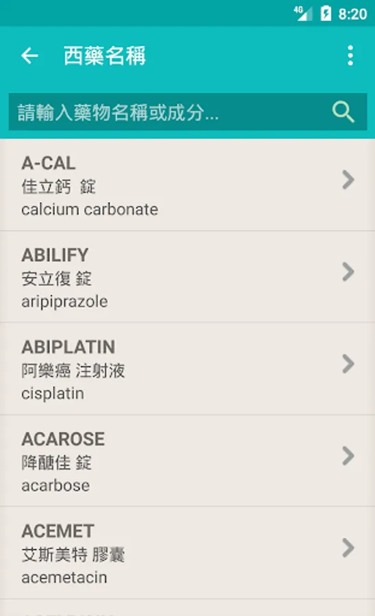 其內容包含藥物分類、中英文藥品名、藥物照片、適應症、用法用量、交互作用等。藥物血中濃度監測及腎功能計算等注意事項都一併提供。另外,每月提供最新藥物新知,在可連接網路情況下,下載其相關檔案。