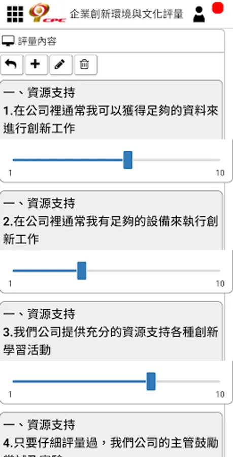 The purpose of this assessment is to help companies understand the atmosphere within the company, and mainly use the KEYS Organizational Culture Scale to evaluate the organization's corporate culture. The main survey dimensions include: resource support, work autonomy, team support, incentives for innovation, organizational obstacles, work pressure and challenges. Among them, resource support, work autonomy, team support, and incentives for innovation are the elements of organizational innovation culture, and organizational obstacles, work pressure and challenges are work resistance. The two-phase echo can understand whether the organization is an organization with innovative conditions in the minds of employees. We will provide general descriptive statistics and correlation analysis with key factors. Companies can make improvements based on the weaknesses of various dimensions in the survey results, and then learn about the company's internal organizational culture. This activity is to issue surveys to all colleagues or departments of the company. In order to improve the accuracy of the questions, there is no limit to the number of surveys. It is also hoped that all employees of the company can actively participate in filling out. The center will conduct a comprehensive analysis of the results of the interviews, and the data will never be made public. Finally, an analysis report will be provided for your company's reference.
