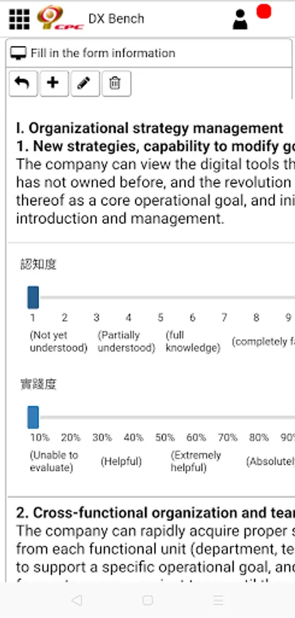 Small and medium-sized enterprises (SMEs) constitute 97.65% of the businesses in Taiwan and are the major economic body and employment market. for digital transformation for lots of businesses. However, unlike well-funded giants who have sufficient resources and clear goals, SMEs instigated the transformation with limited resources. This assessment will assist SMEs to determine their current position of digital transformation and identify the next work goals for transformation.