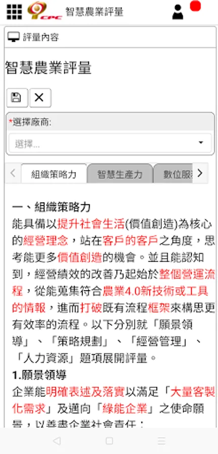 2. This assessment is divided into four assessment dimensions: "organizational strategy", "smart productivity", "digital service" and "innovative value", which correspond to the management planning, production, and digital development of agricultural enterprise organizations. And R&D and innovation capabilities.