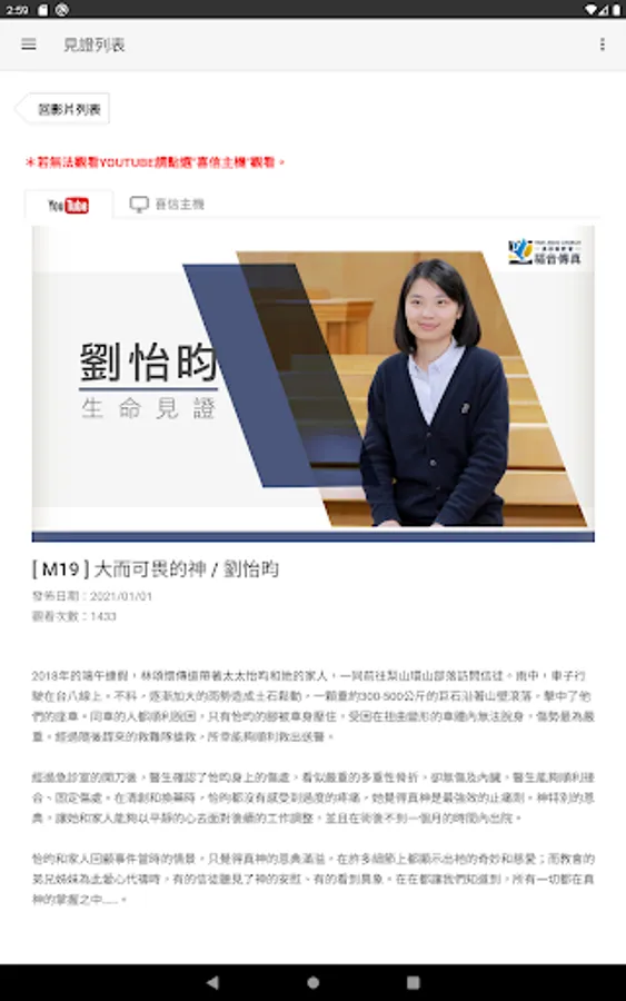 Contains the wonderful gospel testimony of the Church of True Jesus, sharing the miraculous grace.