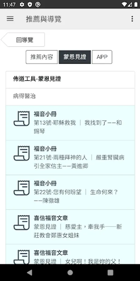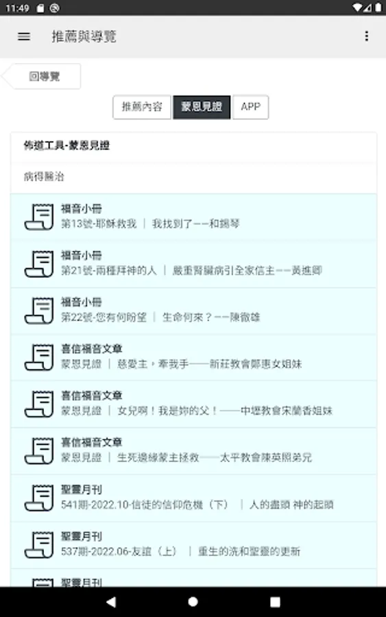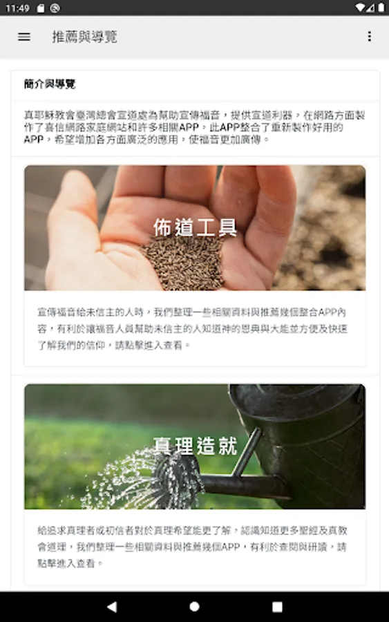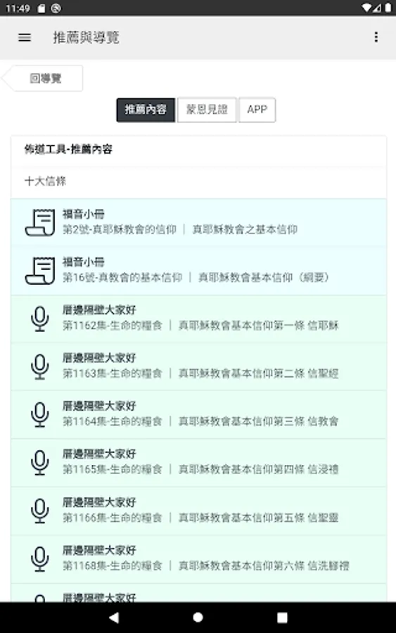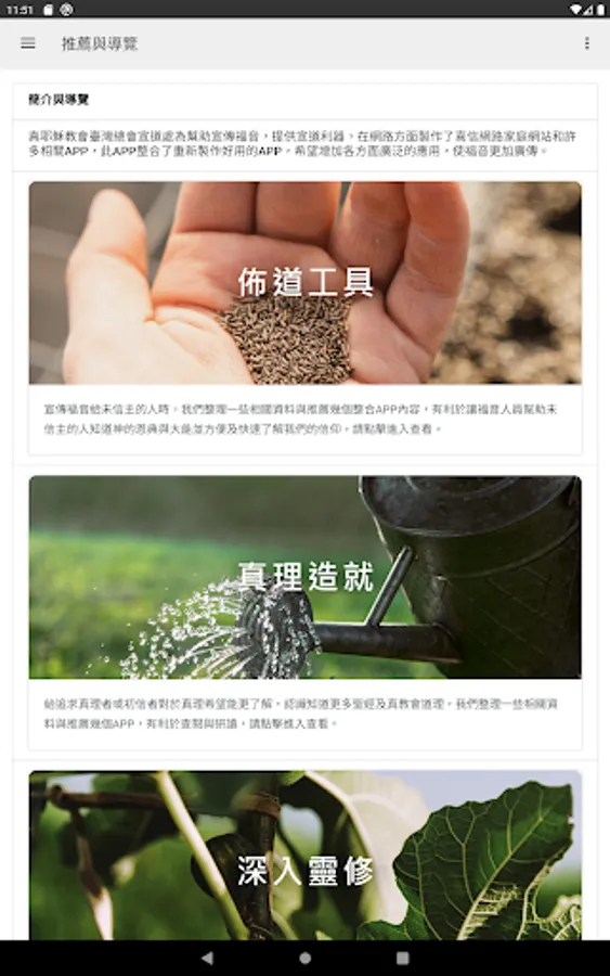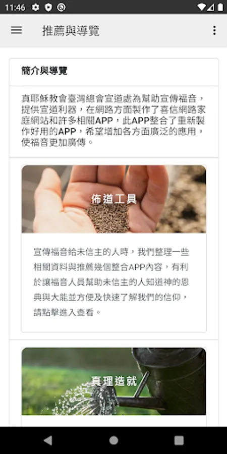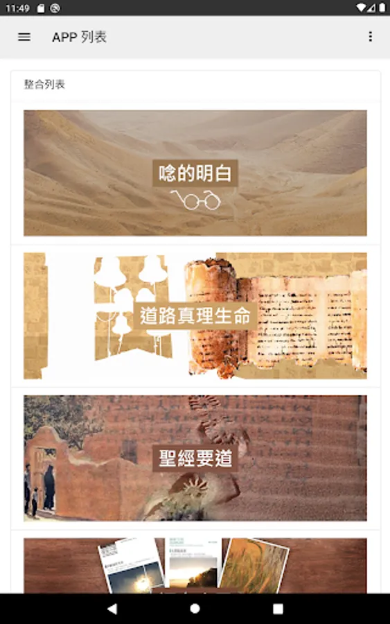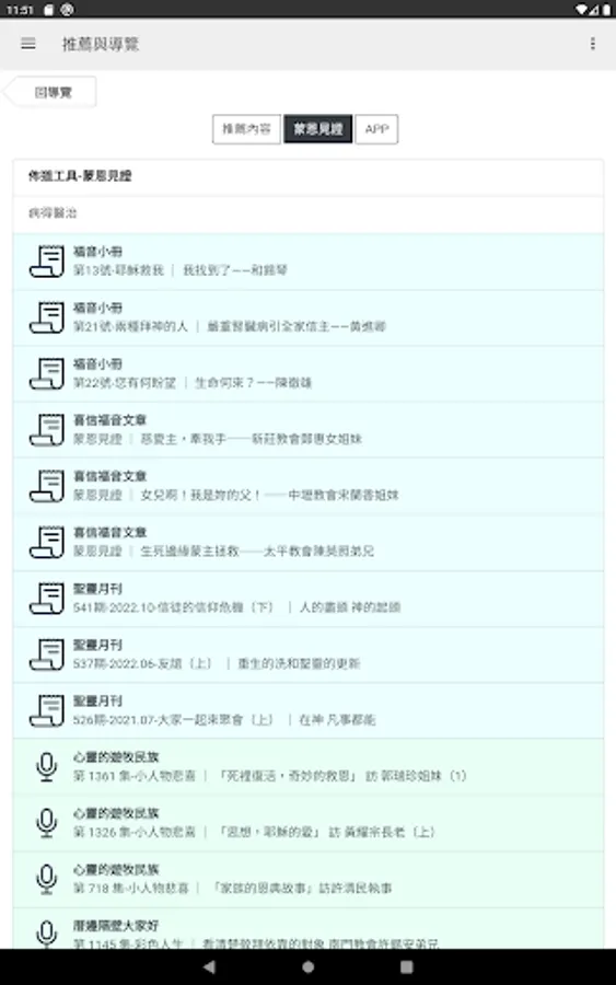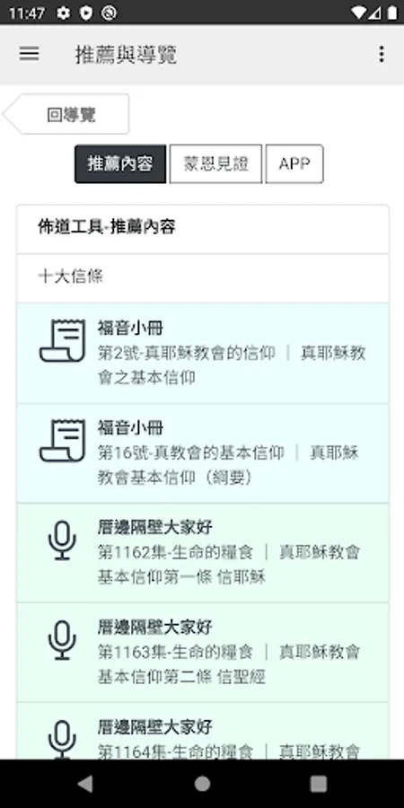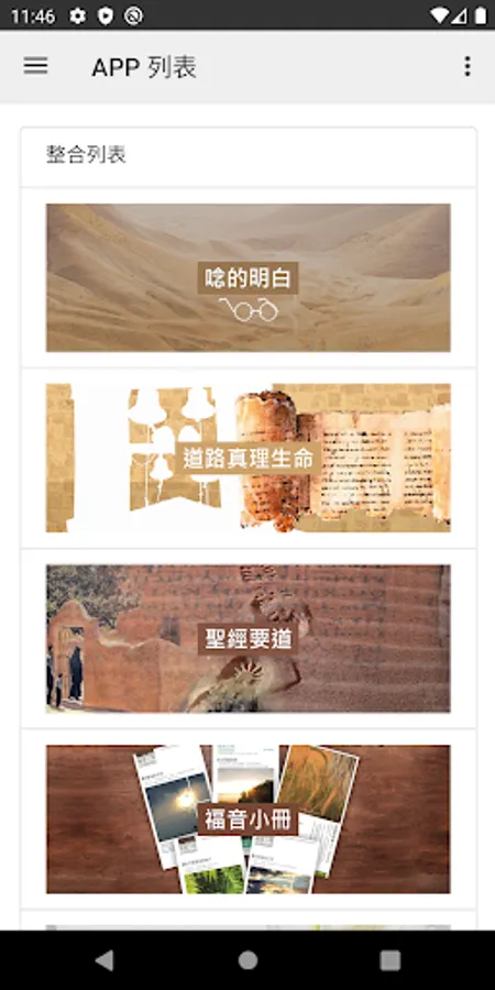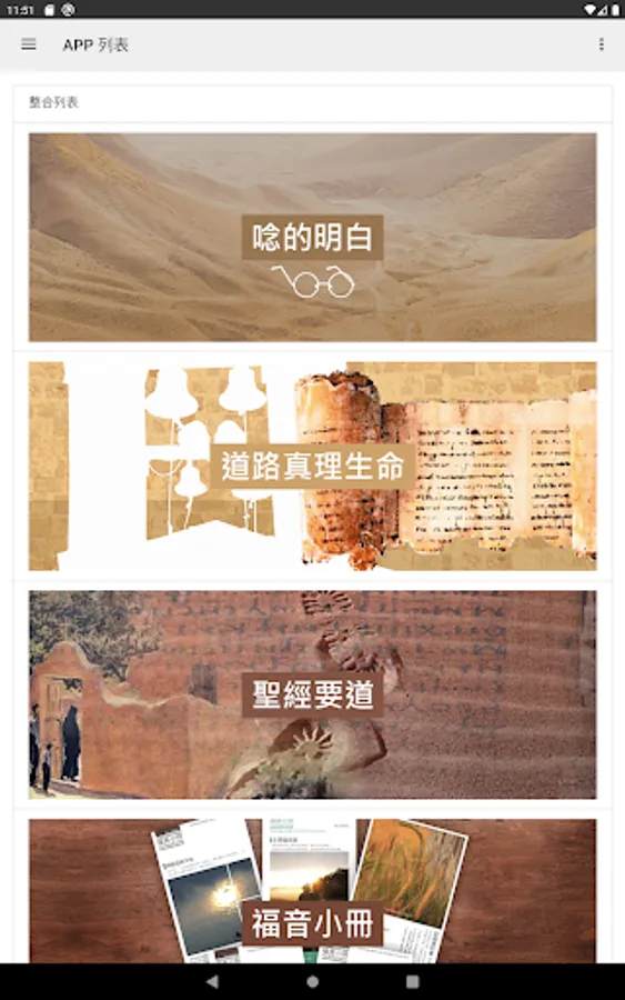 The content includes integrated APP "Scriptures", "Articles", "Broadcast", "Video and Video" and other comprehensive categories of data, and will gradually organize and summarize each data for easy reading, and there is also a comprehensive search to search all the data in the integrated APP , to facilitate inquiry and one by one arrangement and reference.