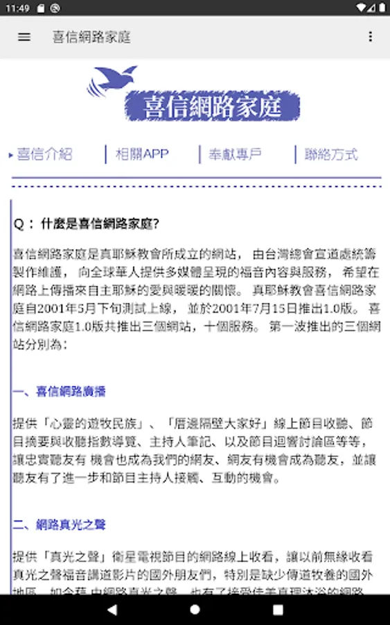 In order to help spread the Gospel and provide powerful tools for preaching, the Mission Office of the Taiwan General Assembly of the True Jesus Church has produced a family website of Xixin Network and many related apps on the Internet. Apply to spread the gospel more widely.