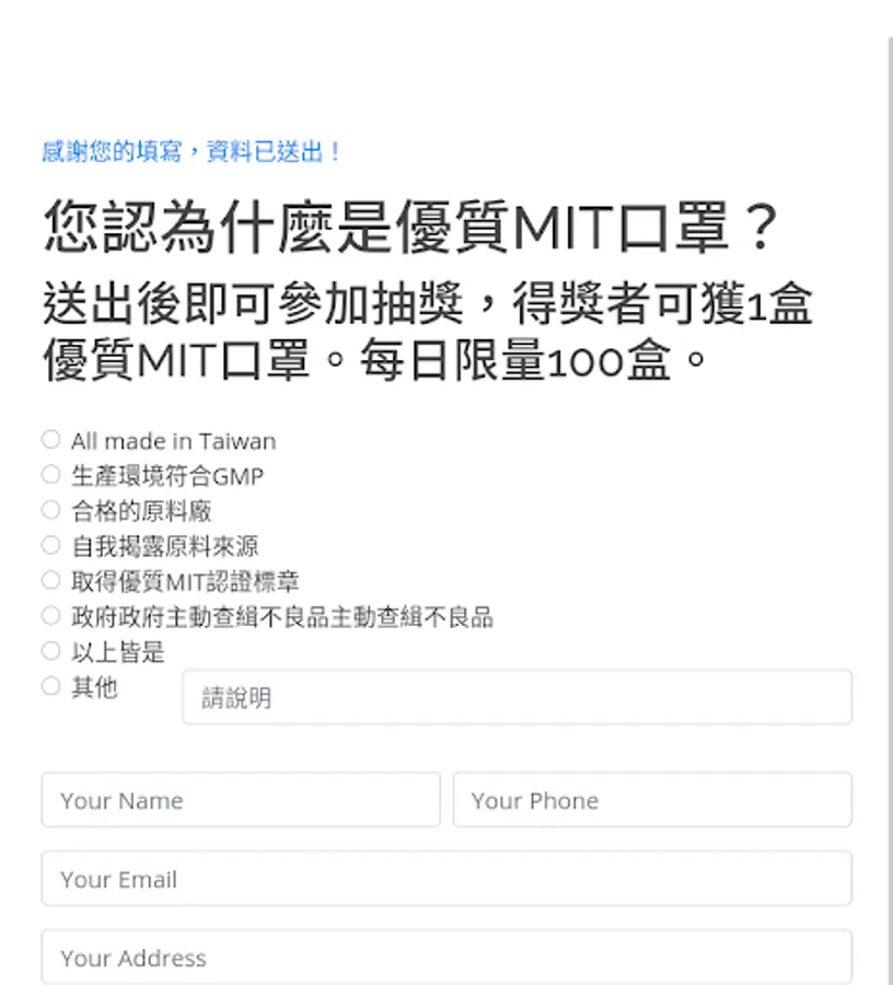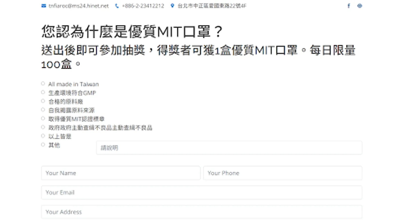 Support the government to continue the policy of domestically produced materials for the epidemic prevention supply chain, implement the promotion of the documentary film, attract people to know MIT's high-quality mask factory, and continue to promote the non-woven product verification mechanism.