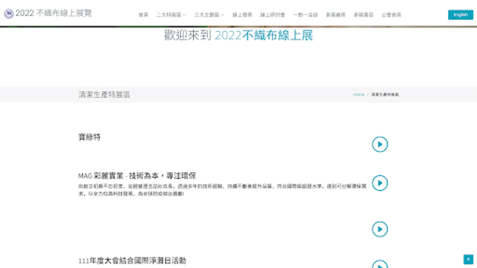 This year's nonwoven fabric exhibition will have two special exhibitions, "Clean Production Special Exhibition" and "Sustainability Sustainability Special Exhibition", echoing the declaration of net-zero upgrades and sustainable zero-carbon emissions in 2050 by countries around the world, and at the same time achieving Industry's social responsibility. The exhibition of non-woven fabrics will enable products made in Taiwan to expand to a larger market, and integrate the smoothness of the upstream and downstream supply chains; at the same time, it will assist the promotion of products of related member factories in the non-woven fabric industry, thereby driving the development and image improvement of the overall textile industry. The exhibition of non-woven wiring will be held from now until December 20th. We sincerely invite the member factories of this association and the advanced companies of related industries to support and participate in this grand event together!