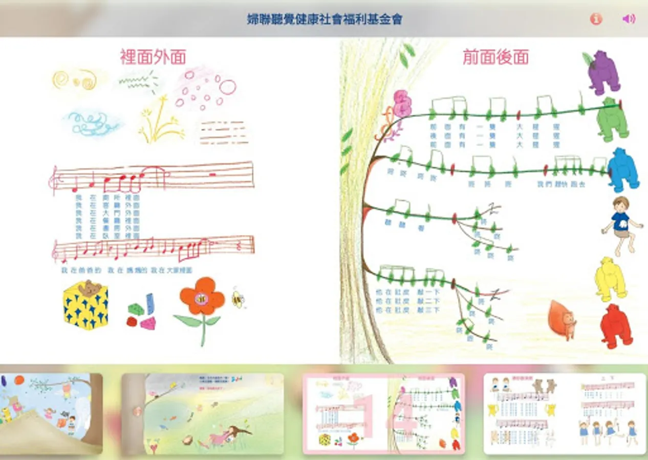 單元文字雖然簡單,但延伸教學及對父母和老師說的話都隱藏在圖畫裡,文字、圖畫和音樂做了巧妙地連結,再加上卡通化的配音,豐富的聲音表情,即便是短短幾句片語,都好像在聽音樂故事一樣。父母和老師在運用前,要用心「探索」才會發現內容的豐富與趣味;若能靈活運用,便可以變化出深淺不同的學習活動。因為內容適用於所有學齡前的嬰幼兒,在App後面的樂譜頁面有遊戲範例可供參考(請按頁面上方的「i」),在倒數第2頁也有各個App及活動範例可使用的樂曲,父母和老師可以依據孩子的年齡、發展、能力,再自行改編、創作、簡化、延伸,讓學習有趣又有效。最後要強調,每一個孩子學習的速度都不盡相同,「等待」是給孩子最大的鼓勵,「包容」則是給孩最大的獎賞,而快樂地學習才能加快學習的速度。「教學相長」是一句有智慧的名言,期盼父母和老師能在與孩子的互動中,體悟到自己的成長,這將是這套教材最大的附加價值。