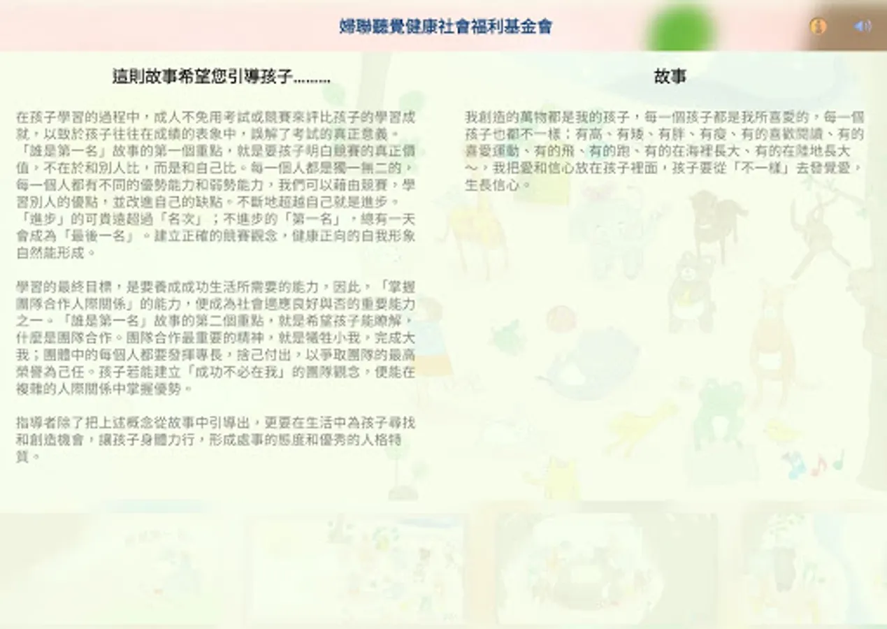 本套教材共有10冊,分別製作成10個App。第1冊至第7冊,每冊有10個單元,是將認知(第1至4冊)、情緒(第5冊)、語言(第6、7冊)發展的基本要素,以小單元的方式呈現,學習的主題非常明確,父母和老師只要掌握孩子發展的需求,為孩子創造學習的機會,便不難達到學習目標。品德和學習能力是一體的兩面,第8冊至第10冊則統整第1冊至第7冊所學的概念,並加入較複雜的語言形式,和較高層次的認知和思考概念,以長篇故事的方式呈現。故事所要探討的是「面對事情的態度」,我們希望提醒使用者,學習的重點不只著重在「技能的獲得」,更應影響孩子正向信念的建立。第8至10冊三則故事的學習重點請參考每個App第2頁的說明(請按頁面上方的「i」)。