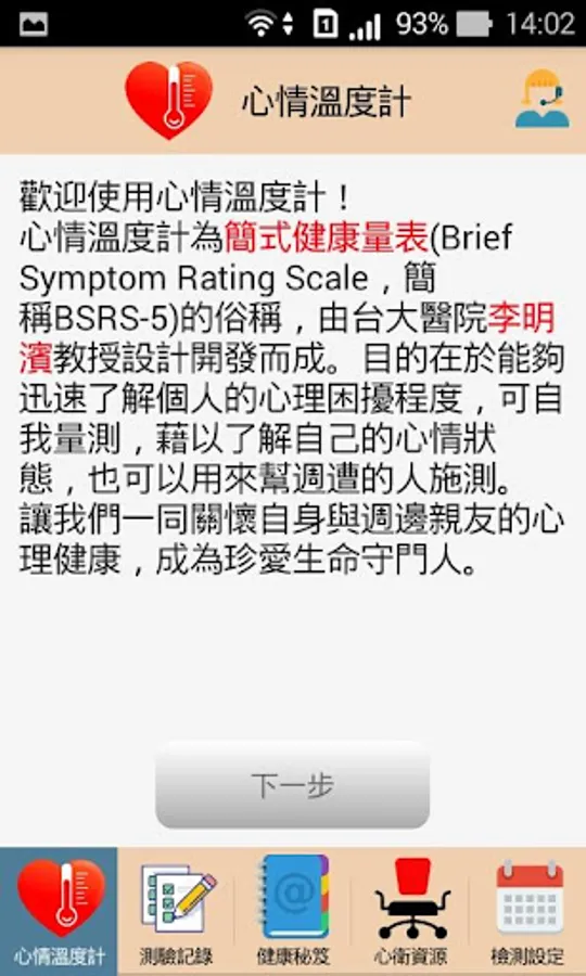 心情溫度計為簡式健康量表的俗稱,目的在於能夠迅速了解個人的心理困擾度,進而提供所需之心理衛生服務。心情溫度計可自我量測,藉以了解自己的心情狀態,也可以用來關懷週遭的人。