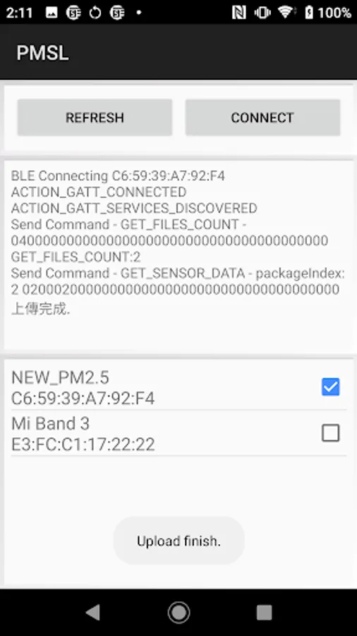 此版本App可協助將感測系統內儲存之感測資訊上傳至雲端網頁,供使用者查看紀錄