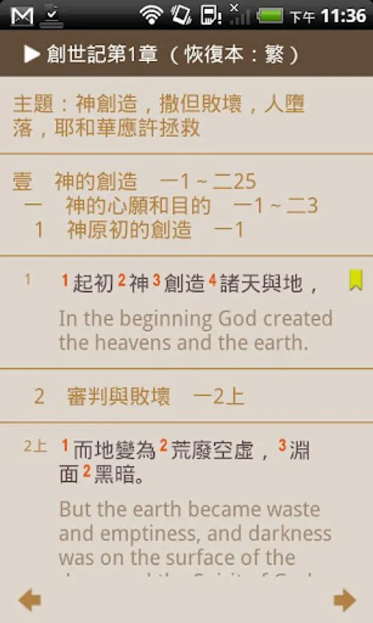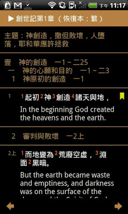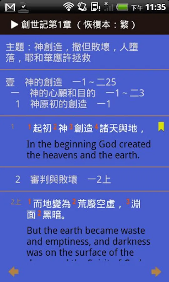 The Electronic Bible (Holy Bible Recovery Version) contains the Holy Bible Recovery Version in traditional and simplified Chinese published by Taiwan Gospel Book Room as well as the Chinese Union Version in traditional and simplified Chinese, the Holy Bible Recovery Version in English with verses only, King James Version, and the Darby Bible. This app was created specifically for Android smartphones and tablets and includes functions such as quick selection of books / chapters/ verses, simultaneous display of two versions, pop-up windows of footnotes, bookmarks, reading history, verse search, personal settings, etc. We hope such a reading tool will help its users to be filled with the divine truth.