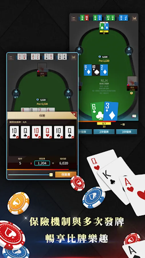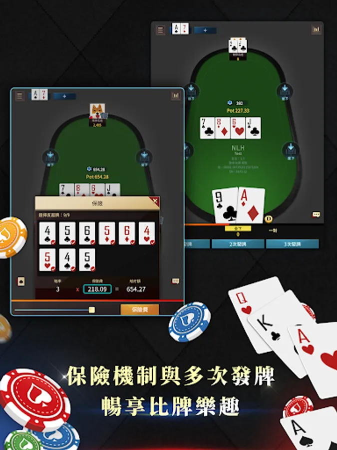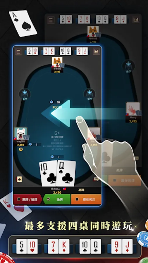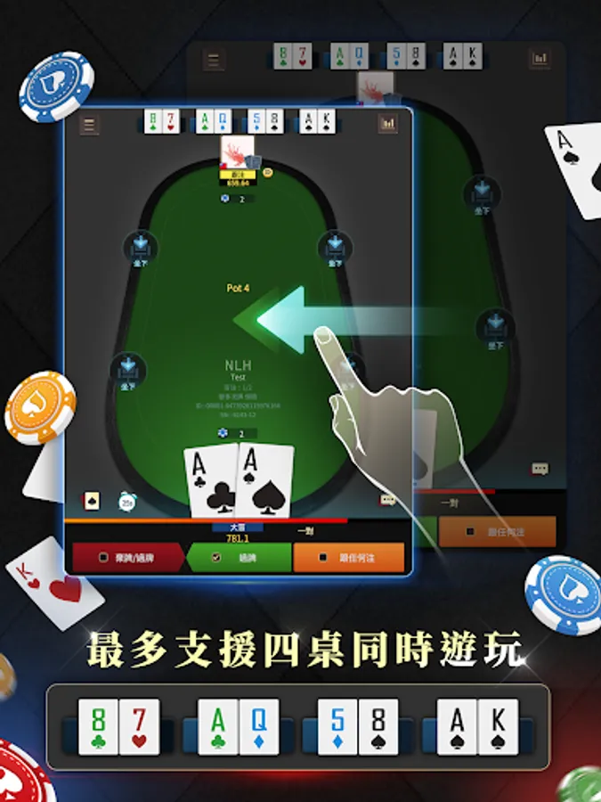 Up to four tables of cards are played at the same time. Don't worry about not being able to wait for a good hand. Support up to four games of cards at the same time. Don't be afraid of not having good cards or not being able to think.