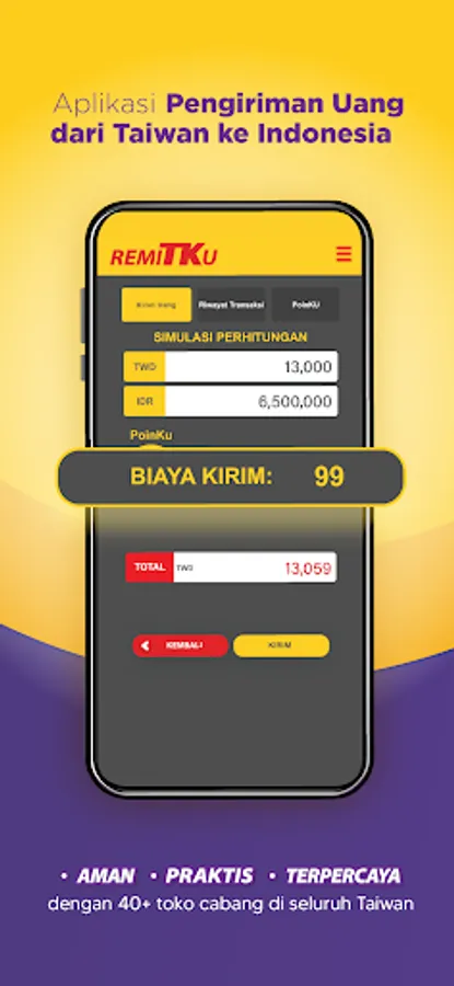 RemiTKu is a remittance application from EEC Global TK, a company that has been operating for more than 20 years. So you can be sure that sending money with the RemiTKu application is safe and experienced!