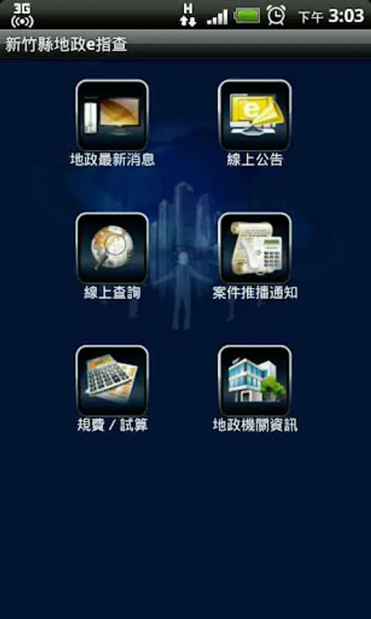 為提升地政便民服務品質,並節省民眾洽公時間,新竹縣政府地政處推出「新竹縣地政e指查」手機軟體,提供服務內容包含地政最新消息、案件(登記、測量、測量移案登記)辦理情形、新舊地建號、土地公告現值、申報地價、前次移轉現值及土地增值稅試算、案件推播通知及線上公告等查詢服務,並提供民眾查詢顯示最近之地政相關服務據點資訊及其地圖位置參考資料,民眾若有需要,歡迎多加利用!