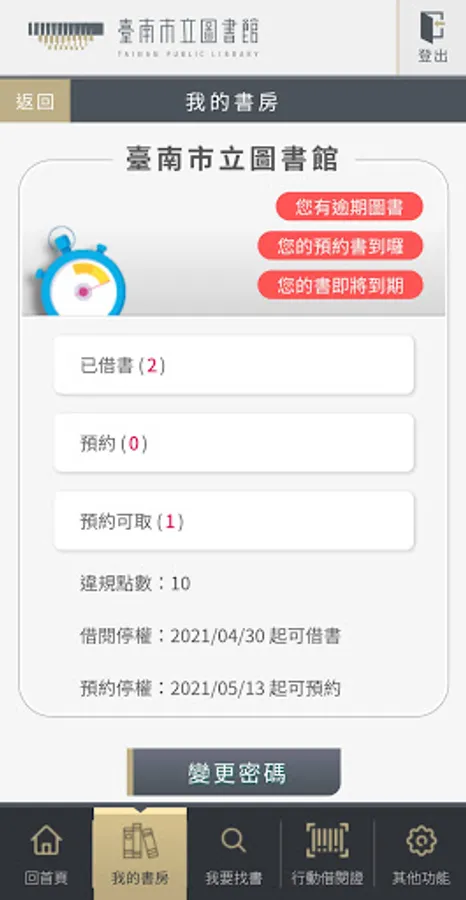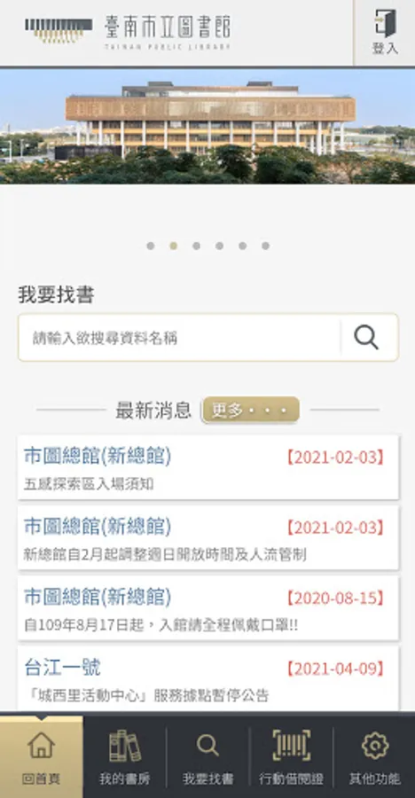 In order to provide the public with better mobile borrowing and book inquiry services, the Tainan Municipal Library provides multiple functions such as "My Library", "I'm Looking for Books", "Mobile Library Card", and "Account Switching".